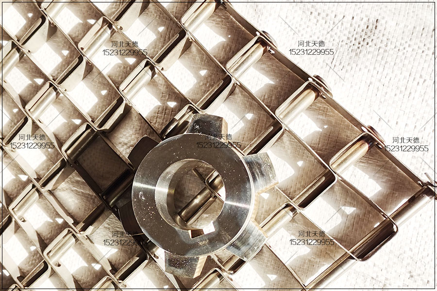 帶鏈條的馬蹄鏈?zhǔn)浇饘佥斔蛶У逆湕l節(jié)距25.4mm,選擇的是四分雙節(jié)距大滾珠鏈條傳送,這種鏈條在運(yùn)輸過(guò)程中就好比火車在軌道上爬行一樣,因?yàn)橛墟湕l鏈輪來(lái)傳送,長(zhǎng)時(shí)間使用也不會(huì)出現(xiàn)輸送帶跑偏與跳齒的現(xiàn)象。