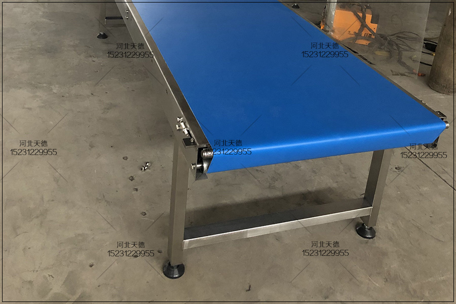 頭部安裝驅動滾筒,尾部要安裝被動滾筒。驅動滾筒與被動滾筒的軸中 央線應與輸送機機架的中 央線垂直,安裝時把頭部滾筒與尾部滾筒的軸 承座固定孔相對應的機架上固定孑L做成長型跑道孔,安裝完成后調整。皮帶兩側的松緊度不一致,導致輸送機輸送帶向緊的一側移動跑偏。這時候 可以通過調整頭尾部滾筒的軸承座的前后位置來處理。 輸送帶的接口 ,輸送帶的接口要平直。輸送帶的接口方法有膠粘法與釘皮帶扣法。要保證皮帶食品輸送機輸送帶接口兩端要整齊,切口線和皮帶中 央線要垂直 。