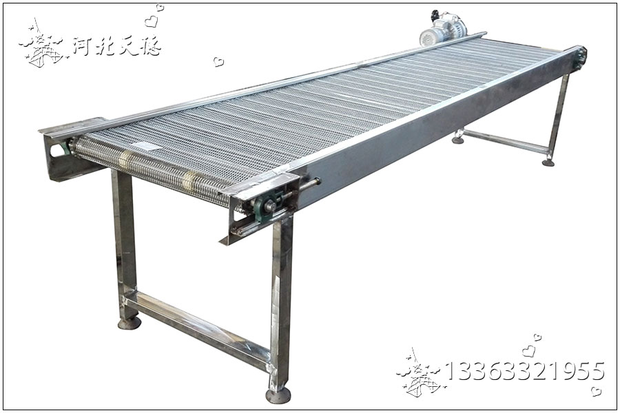 面包蛋撻輸送機,烘培冷卻流水線設備常用的有不銹鋼網帶輸送機,食品皮帶輸送機以食品輸送帶作牽引件輸送物料,運行平穩、造型美觀、使用壽命長。運用食品輸送帶的連續或間歇運動來輸送各種輕重不同的物品,面包蛋撻輸送機輸送帶強度高、伸縮性小、不易變形、易保養,而且衛生、耐腐蝕,在惡劣工作環境中性能強,使用壽命長。面包蛋撻輸送機有適用于食品、副食品、水產品的加工生產線,包裝輸送線和電子、金屬配件加熱、烘烤線,在食品、醫藥、日用化工等行業廣泛使用。