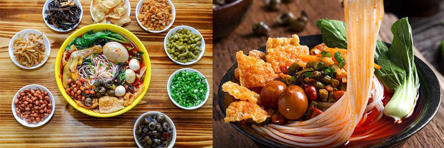 螺螄粉具有辣、酸、燙的風味,在柳州是有名的風味小吃,是由柳州的軟滑爽口的米粉。加上酸筍、花生、木耳、油炸腐竹、黃花菜、鮮美的青菜等配料和煮爛螺螄粉的湯水調和成的,有著鮮美的味道。