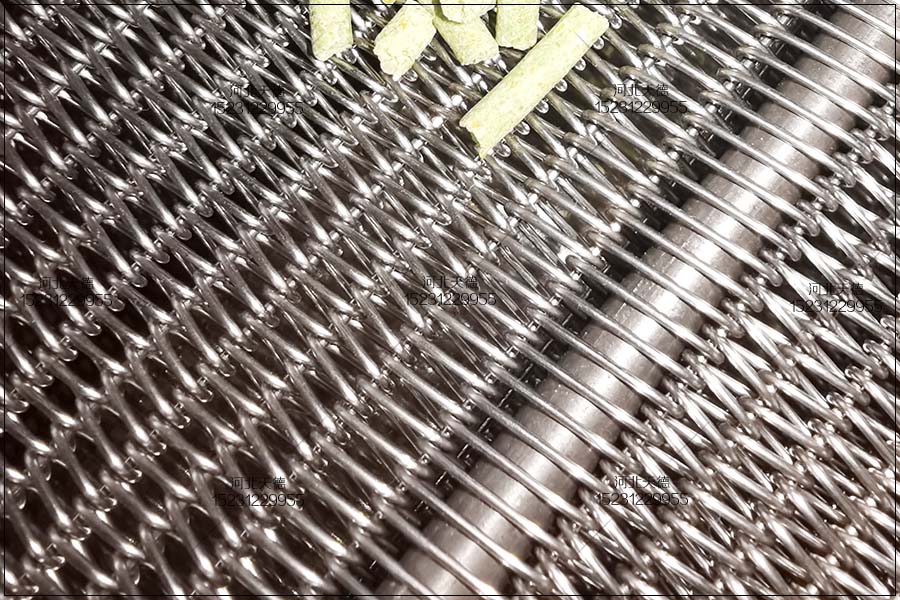 該客戶定制的不銹鋼金屬網帶用來輸送皮革,客戶選擇的無鏈條輸送,皮革輸送機兩端是托輥輸送,金屬網帶選擇不銹鋼304材質鋼絲進行編織。