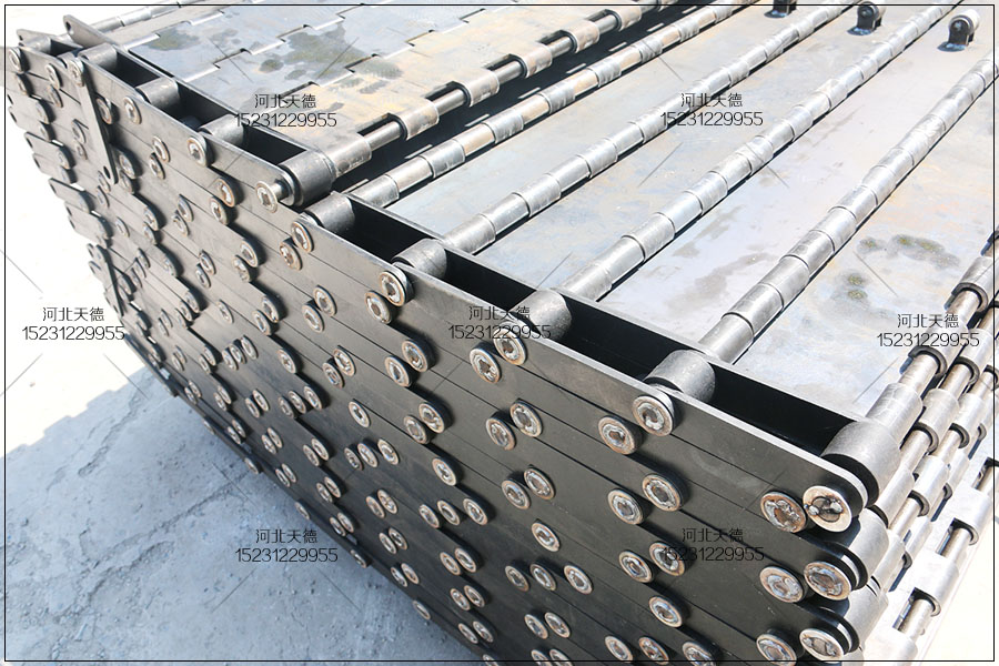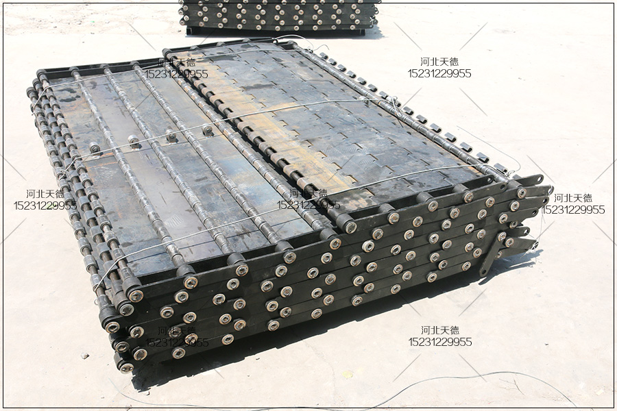 這個是張家口的客戶定制的,用來傳送金屬廢料使用,安裝在大型的重型設備中,需要加厚板加工,承載為載重鏈板輸送帶。